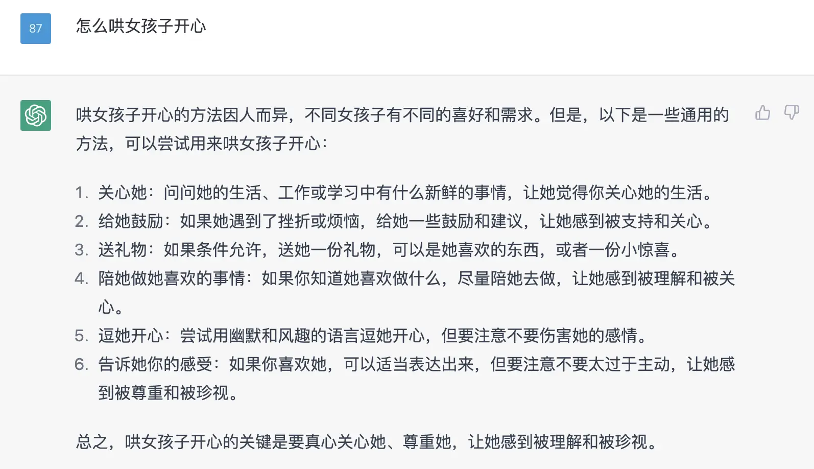 ChatGpt告诉你,如果哄女孩子开心,学到了吧。