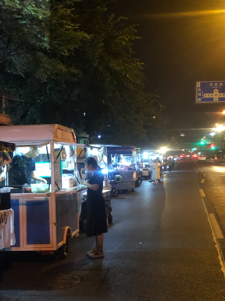 不知道是不是上个月,小区周楼下周边开始有摆夜宵摊的,大小十几辆夜宵车,多少有几辆类似的摊子,好吃好喝的不少。